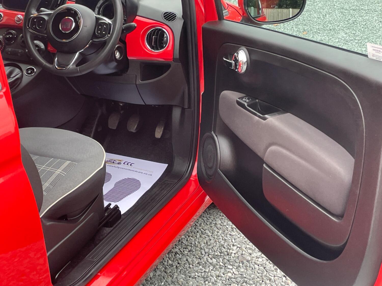 We are delighted to offer for sale this stunning example of a Fiat 500 1.2 1.2 69hp Lounge finished in the ultra rare Fire Opal, with smooth (Manual) gearbox and only 49k miles with a beautiful Grey Cloth check pattern interior, Full service history and serviced again by ourselves with a new advisory free month MOT. Most importantly it is only 1 owner from new.